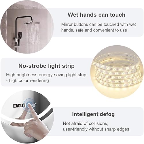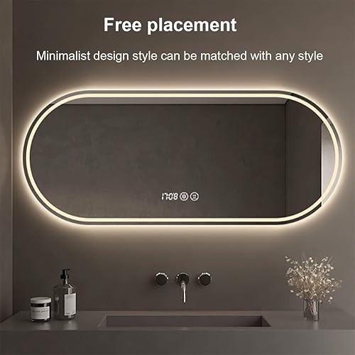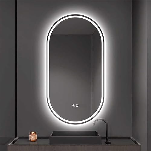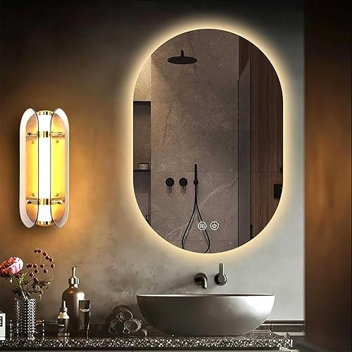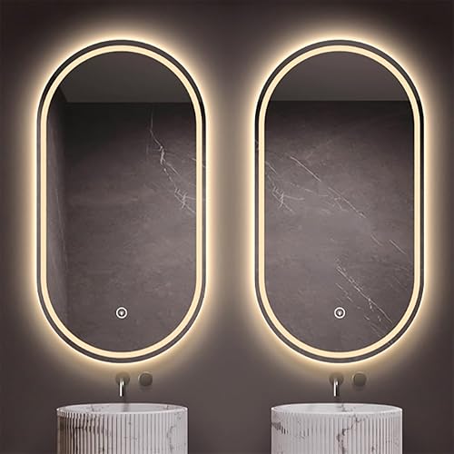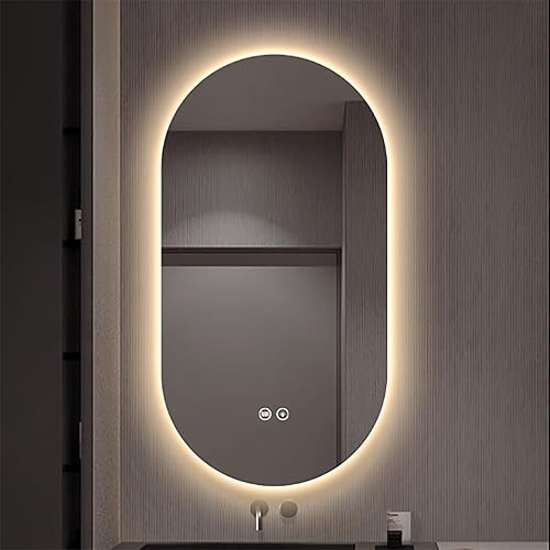 Miroir De Salle De Bain Ovale, Miroir de Salle de Bain avec éclairage, Luminosité Dimmable et 3 Couleurs, Interrupteur Tactile,Fonction Antibuée, Convient pour Salon, Chambre, entrée(Color B,40x80)