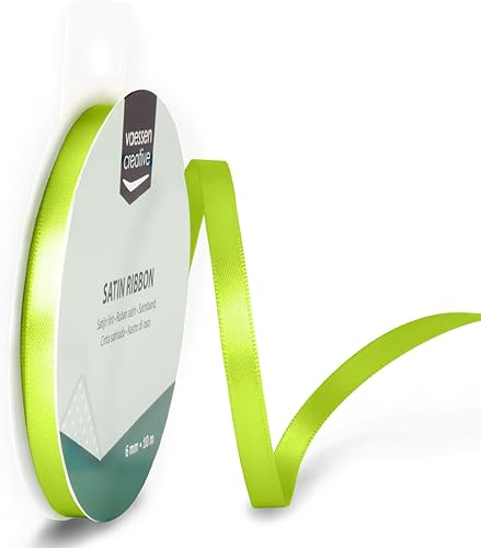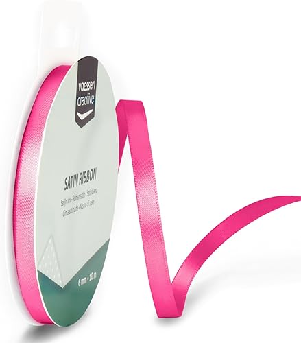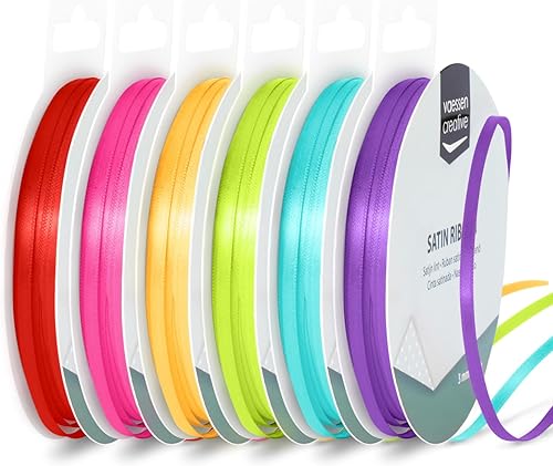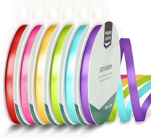 Vaessen Creative Ruban Satin 3 mm x 10 m - Bolduc Double Face pour Cadeau, Emballage et Bouquet Mariage - Couleurs Arc-en-Ciel - 6 Pièces