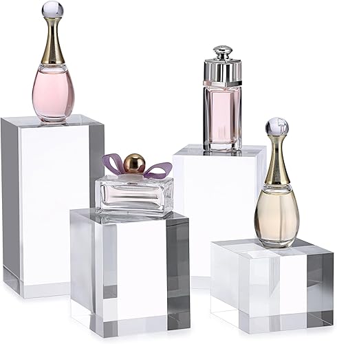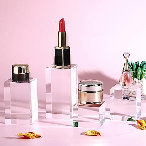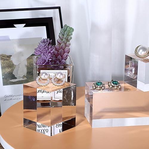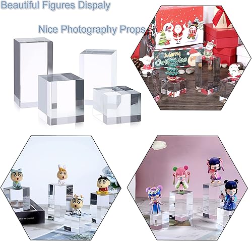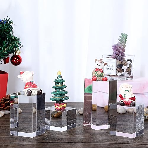 BTSKY Lot de 4 présentoirs cubiques en acrylique transparent et solide pour photos, collections de bijoux, figurines