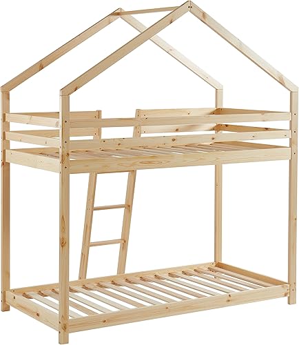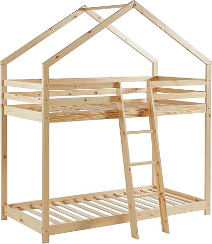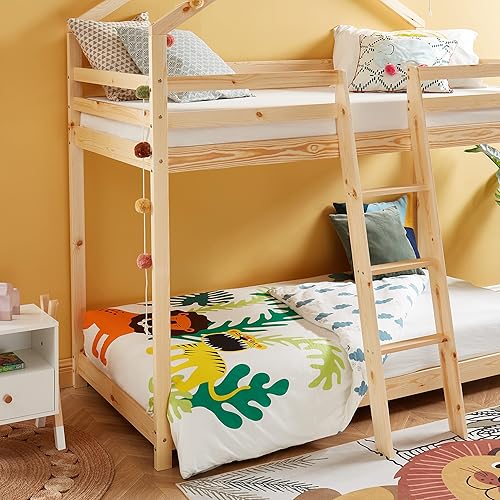 BAÏTA - Lit cabane superposé Tiny pin Massif 90x190 sommier Inclus