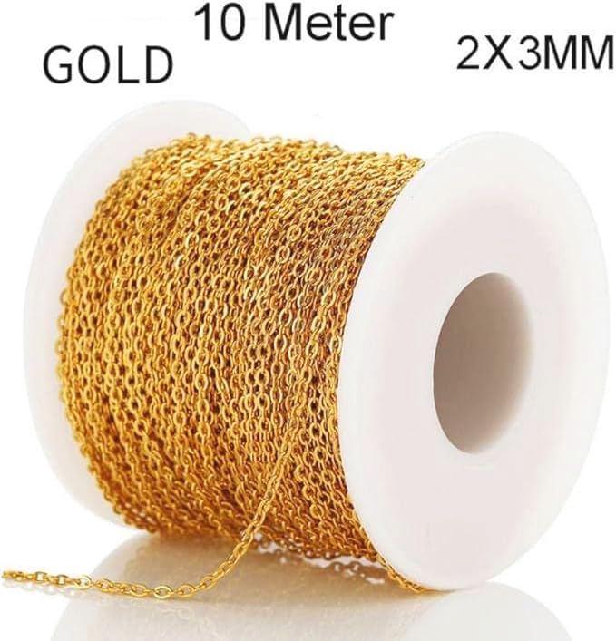 VOANZO 10M Chaîne de Bijoux Accessoires de Fabrication de Bijoux pour la Fabrication de Bijoux à bricoler soi-même (Or)