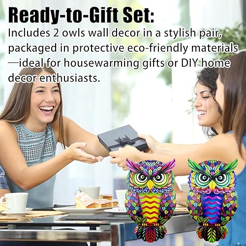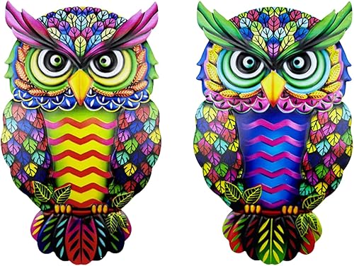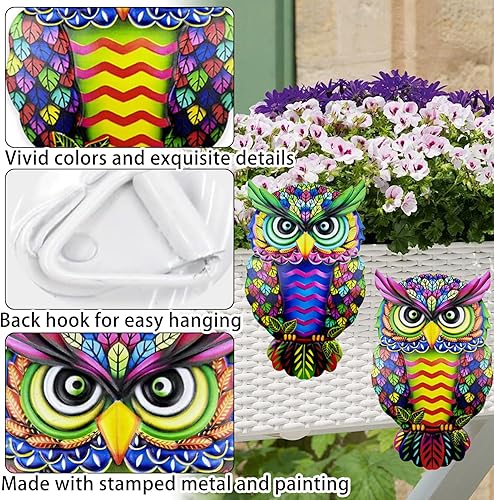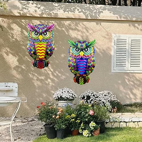 Lot de 2 décorations murales en métal en forme de hibou – Décoration murale d'extérieur unique pour la maison et le jardin, décoration à suspendre résistante aux intempéries avec crochets faciles pour