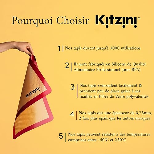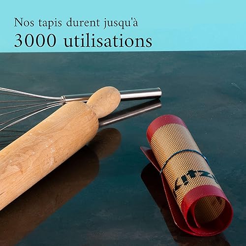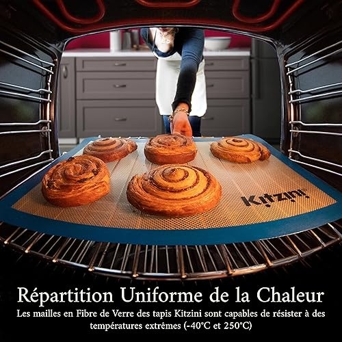 Lot de 2 Tapis de Cuisson en Silicone Sans BPA, 41x29 cm - Tapis Antiadhérent, Feuilles Professionnelles Réutilisables pour Four et Micro-Onde - Biscuits, Macarons, Pain - Jusqu'à 3000 Utilisations