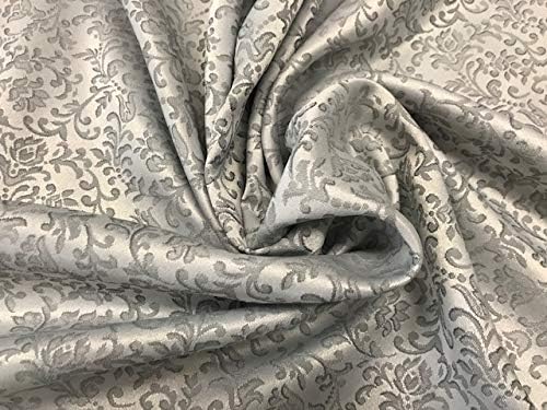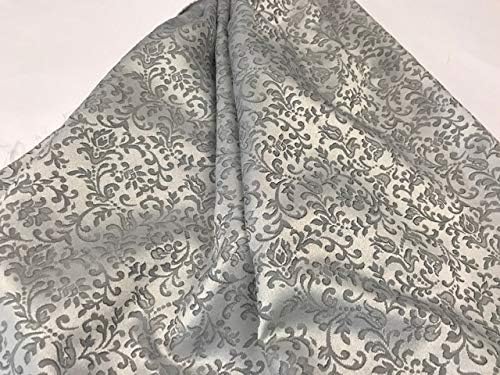 Tissu brocart jacquard gris argenté - Au mètre pour décoration et tapisserie - 1 mètre x 140 cm