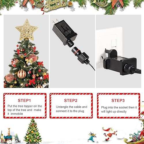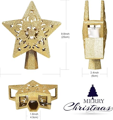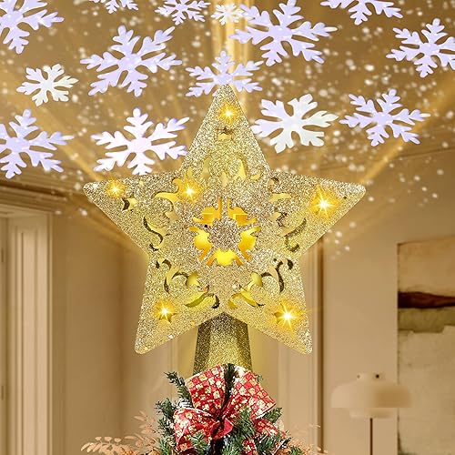 RNSSEZ 3D Étoile de Sapin de Noël 2 en 1 Lampe Projecteur LED Flocon de Neige Rotatif, Etoile Sapin de Noel Lumineuse d'or pour Décoration Noël Arbre Topper (Fiche UE, d'or Étoile)