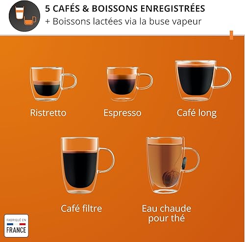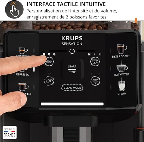 Krups Sensation C50, Machine à café grains, 5 Boissons en accès direct, Interface tactile couleur, Facile à utiliser, Nettoyage sans effort, Buse manuelle Cappuccino, Fabriqué en France EA910810