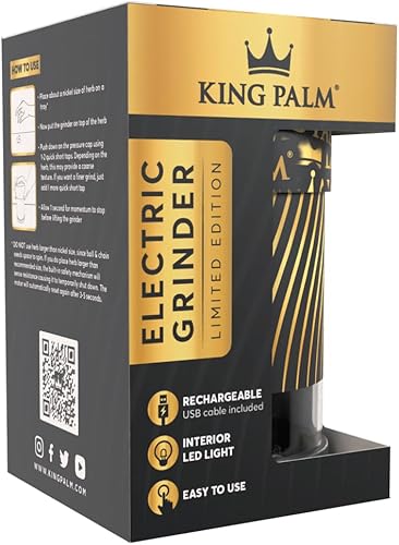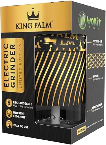 Moulin à herbes électrique Wakit King Palm - Moulin à presser - Simple à utiliser - Médicalement accessible - Chambre de broyage éclairée par LED