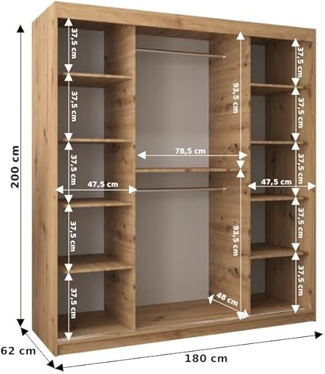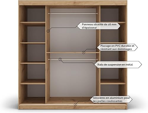 ABIKSMEBLE Armoire Porte coulissante Miroir Tokyo 2 - Armoire Chambre - Dressing Chambre Adulte - Penderie Vetement Dressing - Garde Robe - Placard Chambre - Armoire 2 Portes - Closet