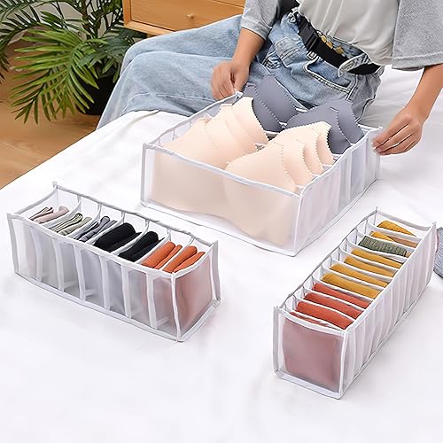 ZMDMAH Lot de 3 Organisateur de Tiroir Pliable Boite rangement sous vetement Rangement sous vetement Rangement chaussette séparateur tiroir lavables portables
