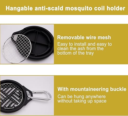 Primasage Support Spirale Anti Moustique, Support de Bobine de Moustique, Porte Encens Spirale Anti Moustique avec Fil de Fer Barbelé et Boucle D'Escalade pour Intérieur et exterieur (Noir)