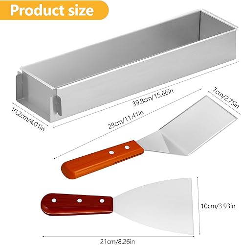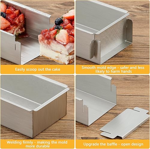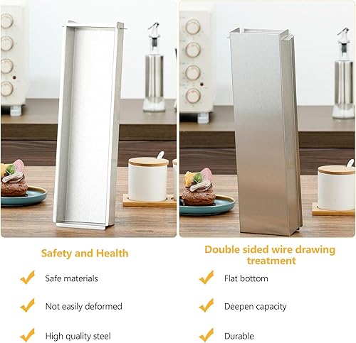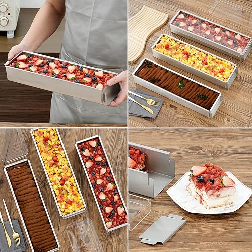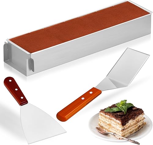 Moule Rectangulaire - Hauteur : 6 cm - en Acier Inoxydable - Rectangulaire - Réglable - Avec 2 Spatules - pour la Préparation de Tartes, Toasts, Pains, Tartes à Couches