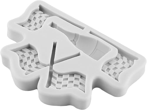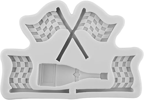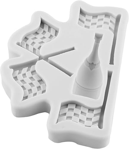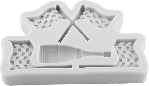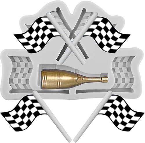 Sijiangmold Drapeau de voiture de course Moules en silicone Bouteille de champagne Moule à fondant pour décoration de gâteau Chocolat Cupcake Topper Bonbons Argile polymère Pâte à fleurs