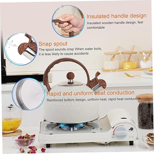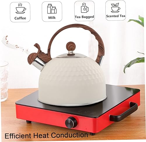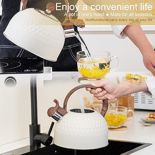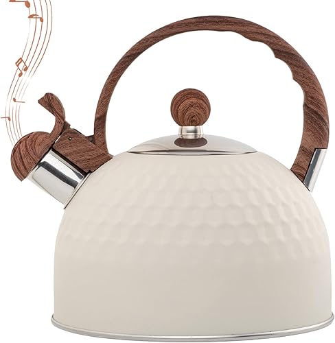 Neroyaner Bouilloire à thé sifflante avec Manche en Bois 2, 5 l Théière en Acier Inoxydable à Texture martelée Théière Blanche au Lait sans Odeur Bouilloires thé pour cuisinière Induction