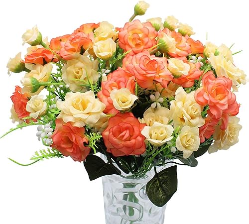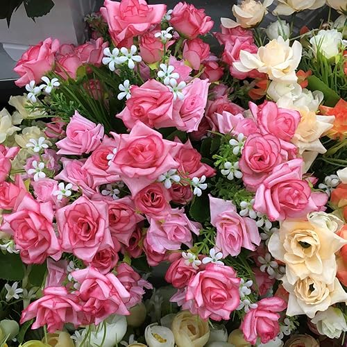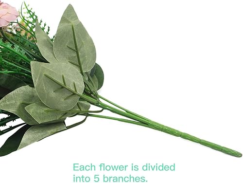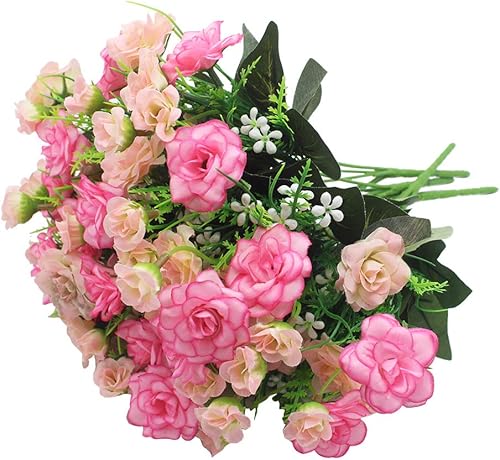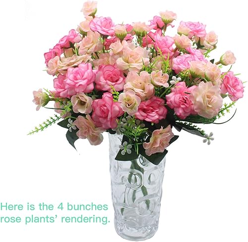 JaneYi 4 pièces Bouquet de Roses artificielles en Soie Artificielle pour décoration d'intérieur ou d'extérieur, pour Table de Cuisine, Jardin, Bureau, fête de Mariage - Rose et Rose Clair