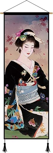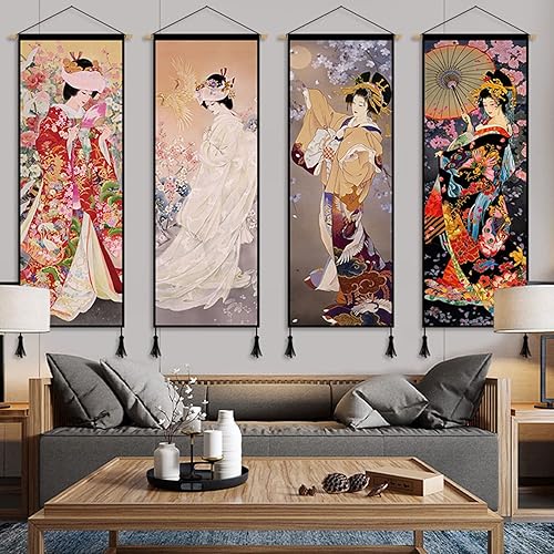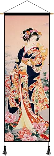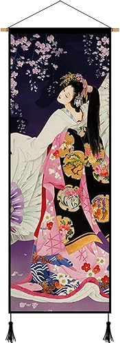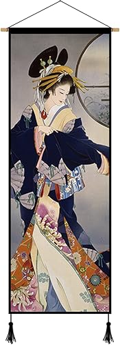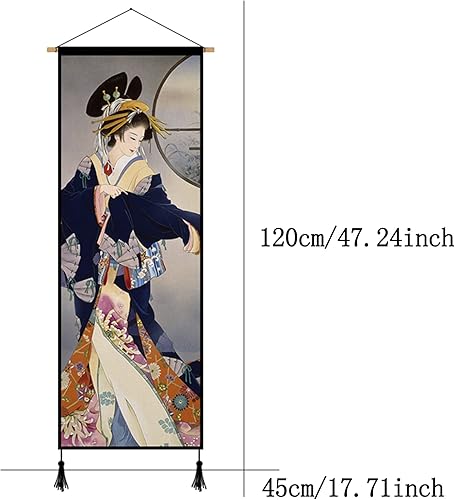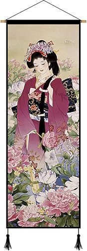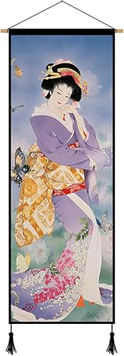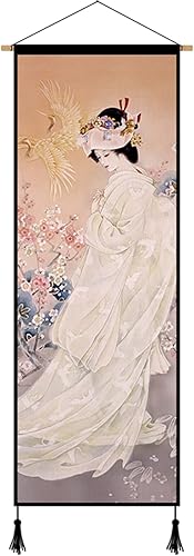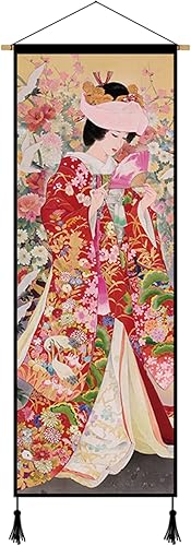 Peinture sur rouleau de soie, rouleau d'art chinois, dessin de défilement de soie asiatique, décorations murales japonaises pour la maison, kimono antique beauté tenture murale sur toile imprimée,