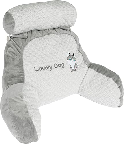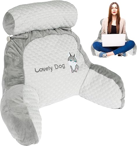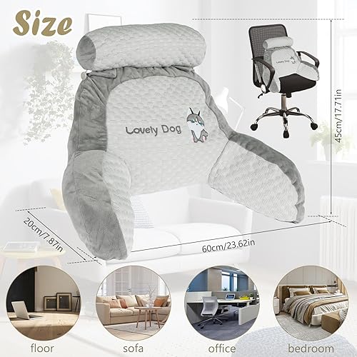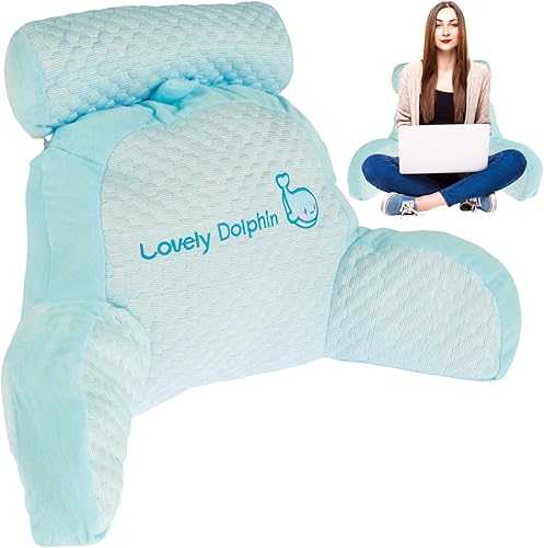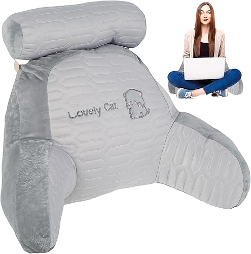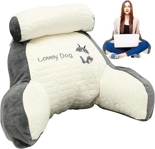 Coussin de Lecture pour Lit Adulte Oreiller de Lecture avec Accoudoirs Coussin Support Lombaire Confort et Ergonomie Portable Coussin Soutien du Dos pour Lecture Relaxante Lit Canapé Fauteuil (F)