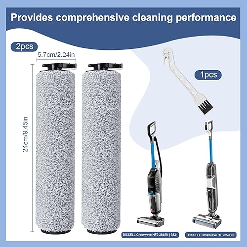 Heykewi Rouleaux de brosse de rechange pour Bissell CrossWave HF2 | 3845N | 3831, pour Bissell CrossWave HF3 | 3598N Aspirateur Accessoires, 2 Brosse à rouleau, 1 Brosse de nettoyage