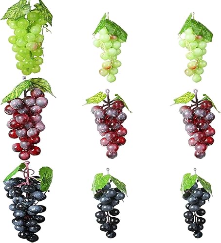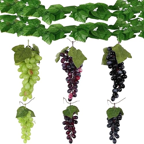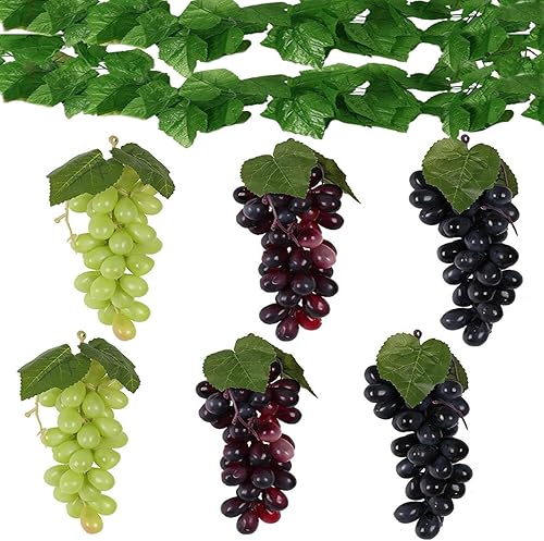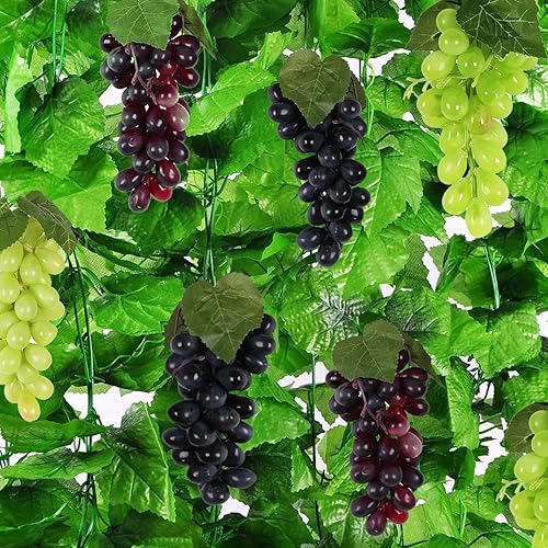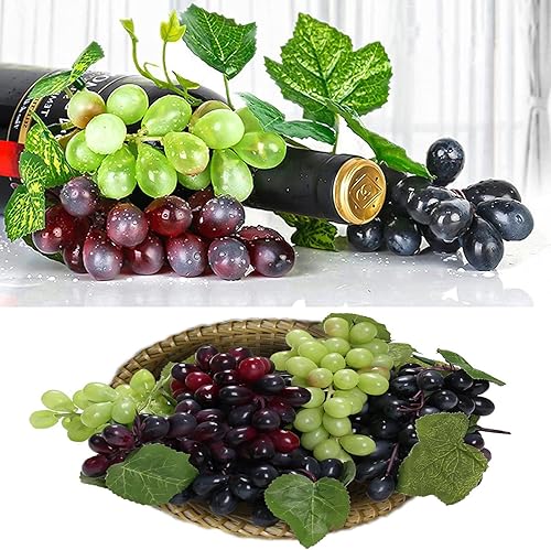 YIMINI 8 Pièces Simulé Raisin, Faux Fruits Raisins Décoratifs, Plastique Grappes De Raisins, Grappes De Raisins Artificiels, pour Maison, Intérieur, Extérieur, Fête, Jardin, Décoration Murale