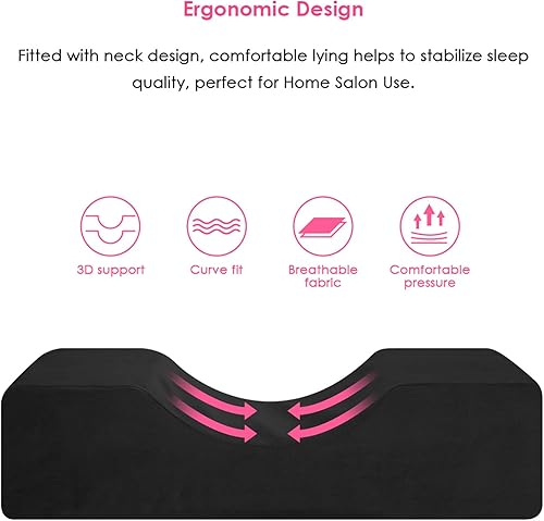 Yagosodee Oreiller d'extension de cils en forme de U - Oreiller ergonomique en mousse à mémoire de forme - Support de cou - Oreiller de salon de beauté pour extension de cils - Noir