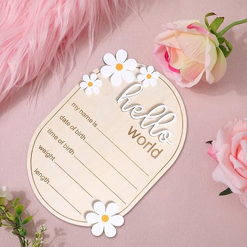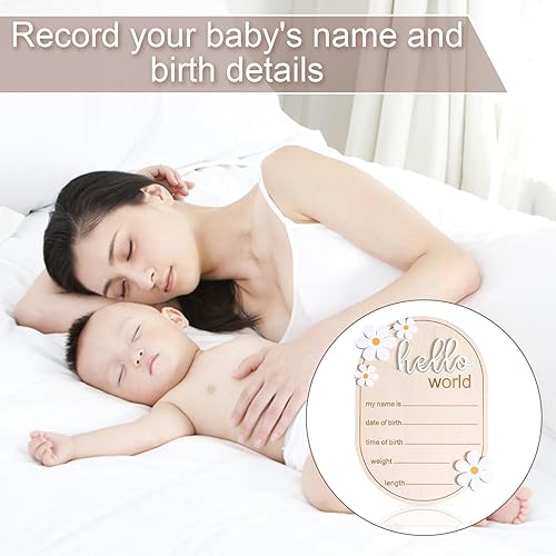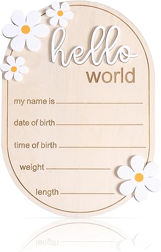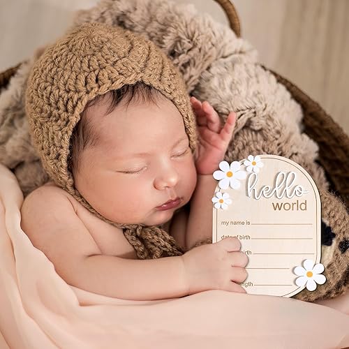 Panneau d'Annonce De Naissance, Panneau d'Annonce de Nouveau-Né en Bois 15 x 10,5 cm Panneau Hello World Panneau de Nom de Bébé Panneau d'Annonce de Naissance pour Crèche d'Hôpital