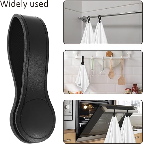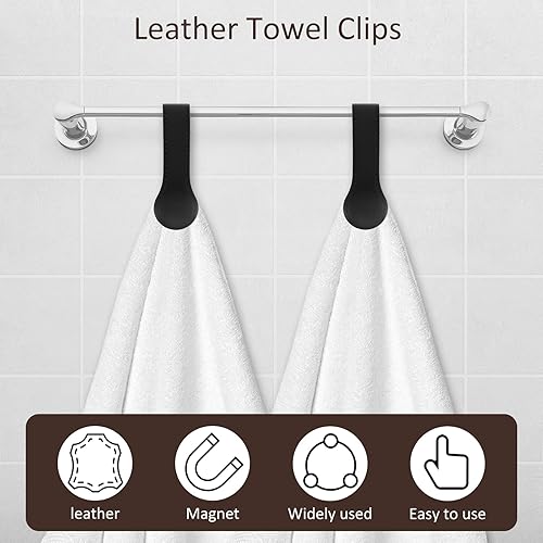 Guniata Lot de 2 clips magnétiques pour serviettes en cuir, faciles d'accès, pour cuisine et salle de bain (noir, 2 pièces)