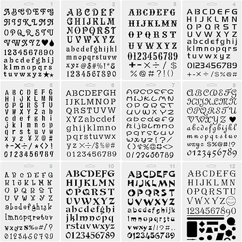 12 pièces Pochoir de lettres, Pochoir Alphabet pour Journal, Pochoir de lettres et de chiffres pour Journal, Carnet de notes, Journal, Décoration d'album