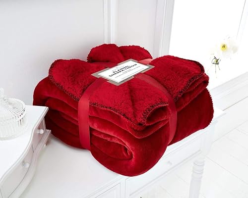 CT Couverture en flanelle Sherpa de luxe super douce et chaude pour canapé et lit (Rouge, King size (200 x 240 cm)