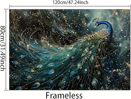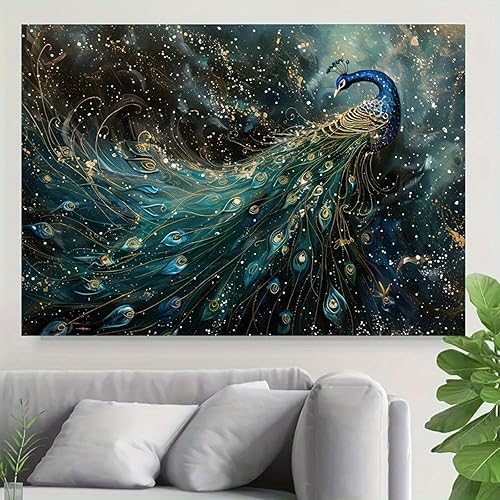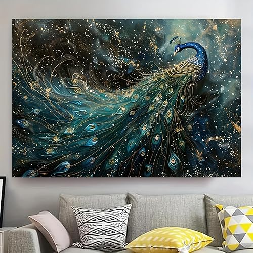 Toile décorative moderne et vibrante représentant un paon, idéale pour le salon et la chambre (60 x 80cm), sans cadre