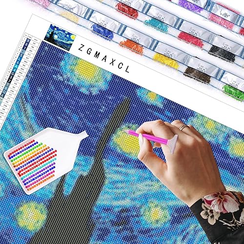 ZGmaxCL DIY 5D Diamond Painting Strass Complet Van Gogh Nuit Étoilée Decoration Murale Salon 60x40cm