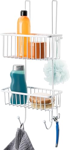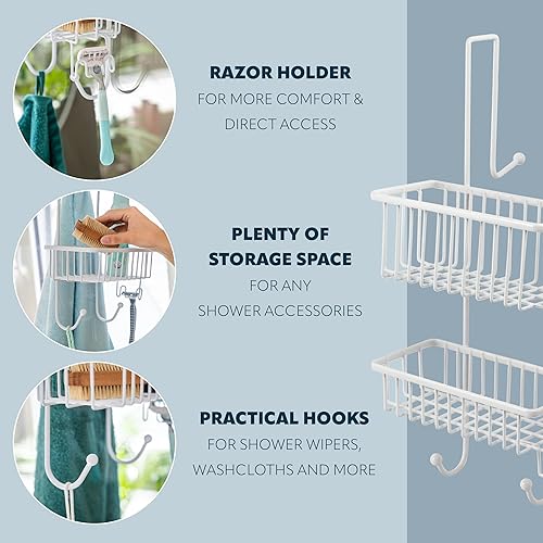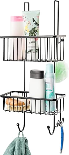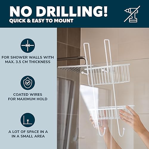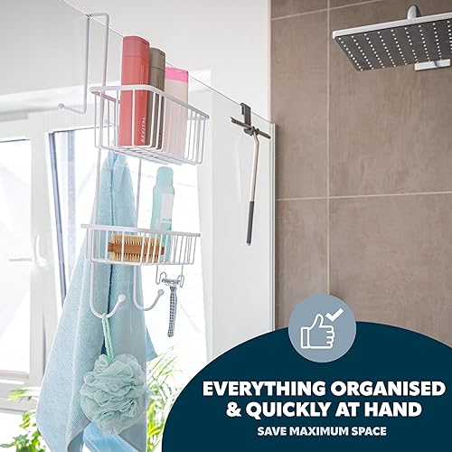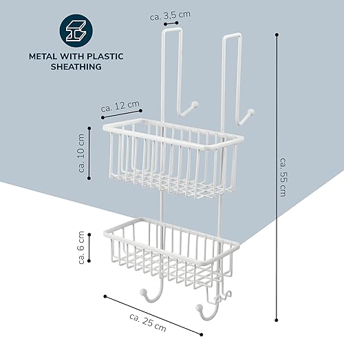 bremermann Panier de douche à suspendre au-dessus de la paroi de douche, étagère de salle de bains avec 2 paniers et crochets - revêtement PE de haute qualité, en métal (Noir)