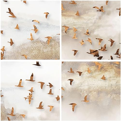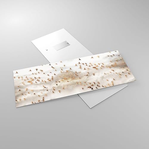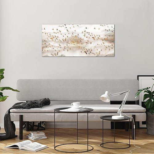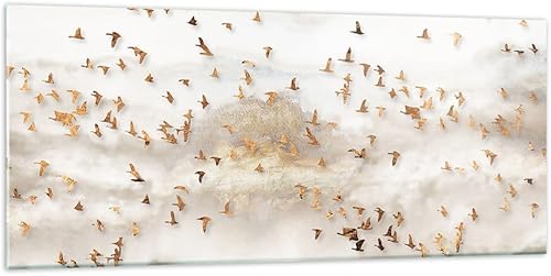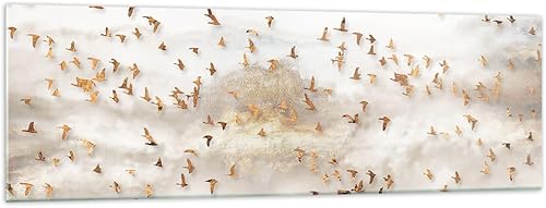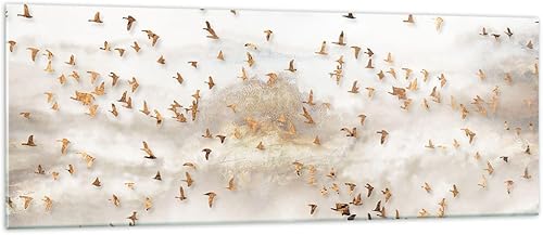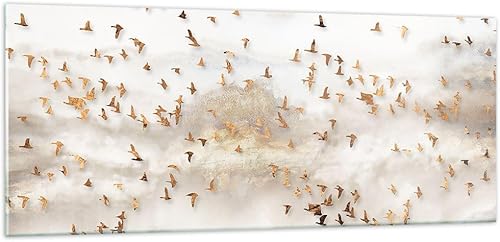 Moderne Impression sur Verre 100x40cm Image Tableau en Verre Decoration Murale Des Oiseaux Or Minimalisme Grand Tableaux Decoratifs Muraux Chambre Panoramique Deco Cadre Salon Art GAB100x40-5679