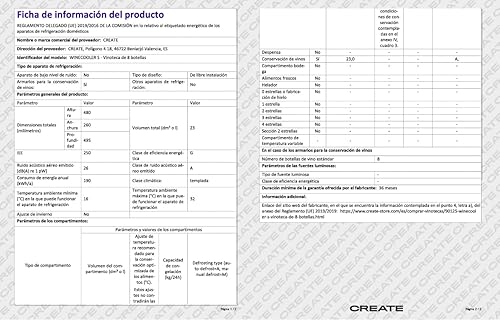 CREATE / WINECOOLER S/Cave à vin de 8 bouteilles/Température réglable entre 11 ºC et 18 ºC.