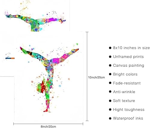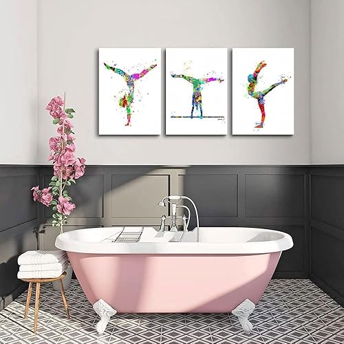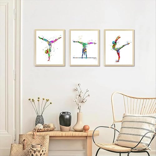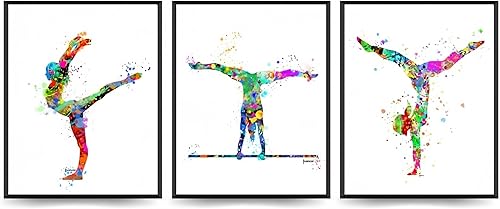 Linilioart Lot de 3 impressions murales de gymnastique - Décoration murale pour chambre de fille - Sans cadre (50 x 70 cm)
