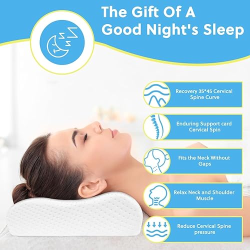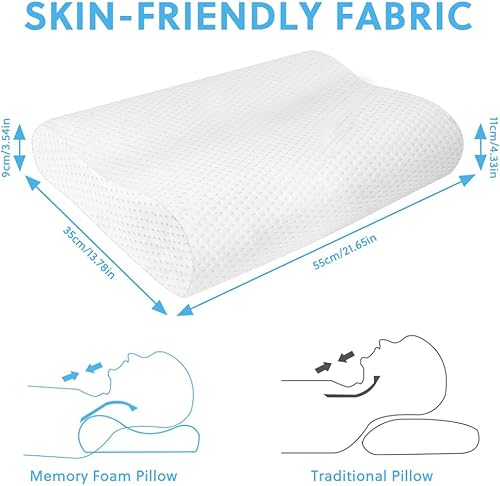 Ainiv Oreiller en Mousse à Mémoire de Forme, Oreiller Orthopédique pour Le Sommeil, Oreiller Memory Foam Conception Confort du Cou Oreiller de Sommeil pour Dormeurs sur Le Côté/Dos/Ventre