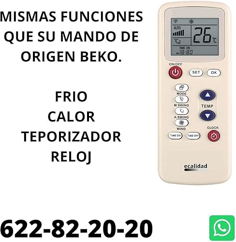 BEKO - Télécommande Climatiseur BEKO - Support Velcro + Piles incluses - Télécommande compatible avec air conditionné BEKO Livraison en 24-48 heures. Beko Télécommande compatible.