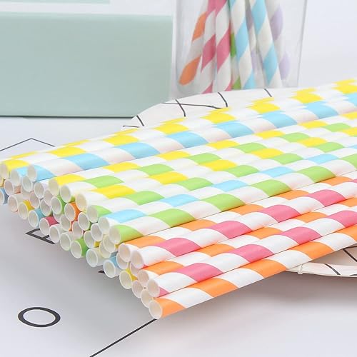DERAYEE Lot de 150 Pailles pour Boire en Papier Coloré, Biodégradables pour Anniversaire, Mariage, Fête