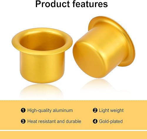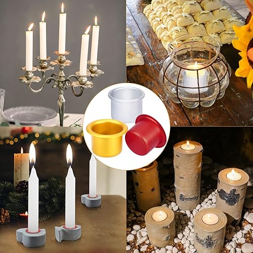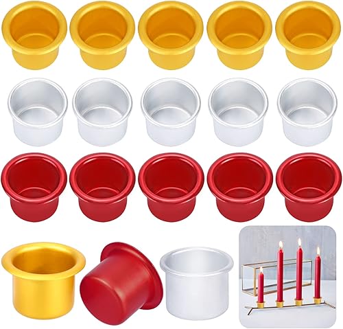 18pcs Inserts de Bougie en Métal Tasses de Bougie, Aluminium Insert de Bougeoir Insert Buses Bougie Mini Bougeoir Chandelier pour Famille Fête Décoration de Vacances, Or, Argent, Rose Rouge