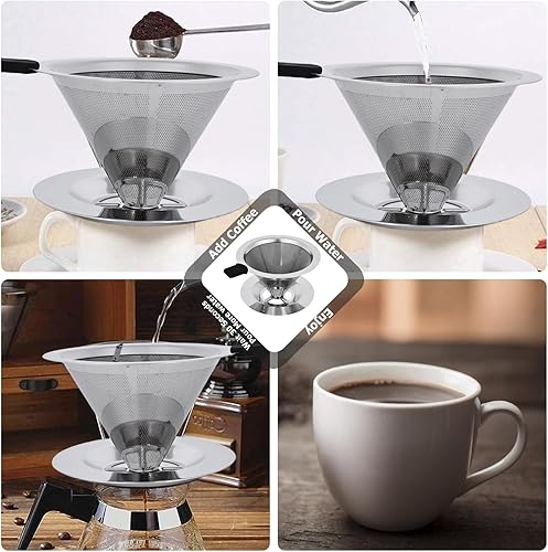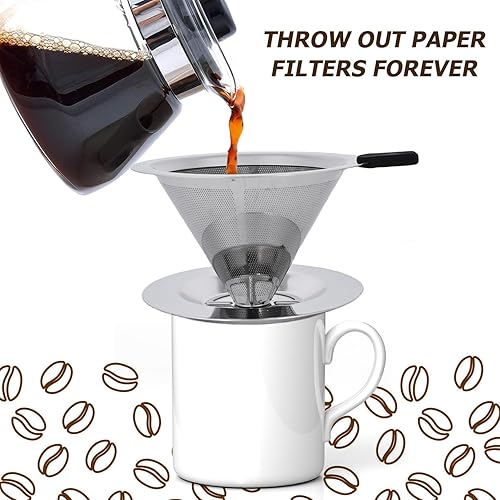 HOMURY Filtre à café en acier inoxydable réutilisable - Avec large base en métal - Filtre permanent sans papier pour café filtre
