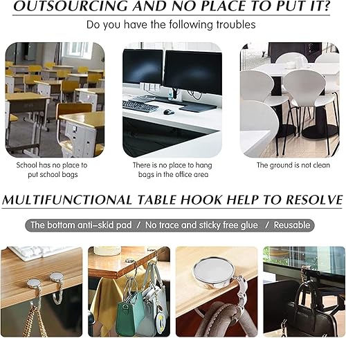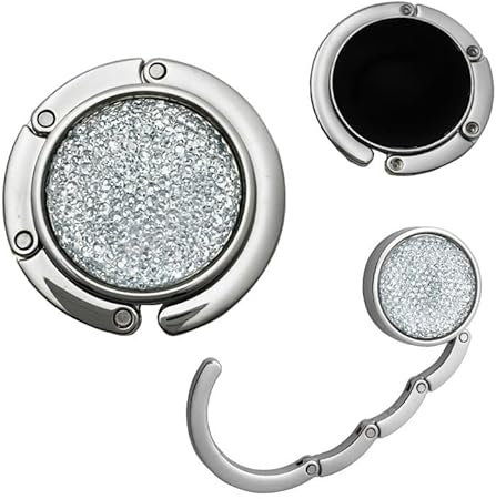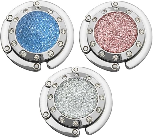 Kimuwote Lot de 3 crochets de sac à main de table pliables antidérapants en métal pour sac à main - Petits diamants - Or rose blanc argent bleu aqua