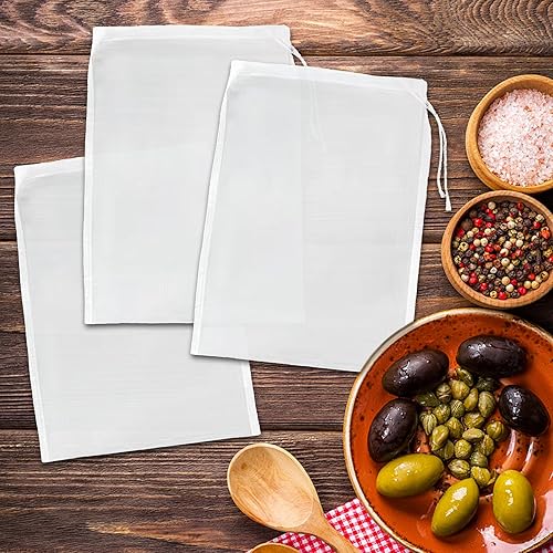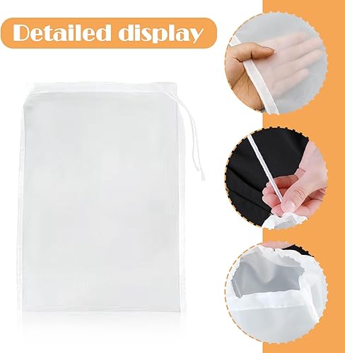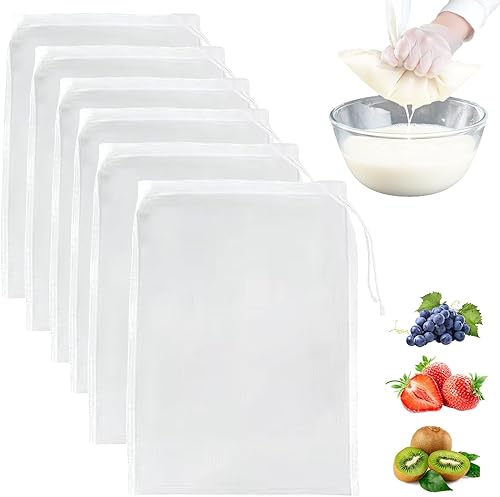 XQMMGO Lot de 6 sacs à lait de noix - 20 × 30 cm - Réutilisables - Avec cordon de serrage - En nylon - Pour fromage, jus de fruits, café, jus de légumes (20 × 30 cm)