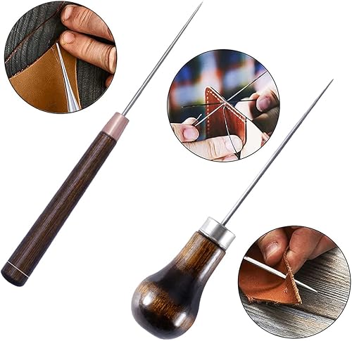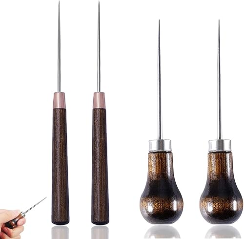 4 pièces Poinçon avec Manche en Bois, Alène en Cuir, Couture Poinçon Alène, Alènes Manche Bois, Alêne en Bois, Pour la Couture du Cuir, Leather handmade DIY, Piqueuse
