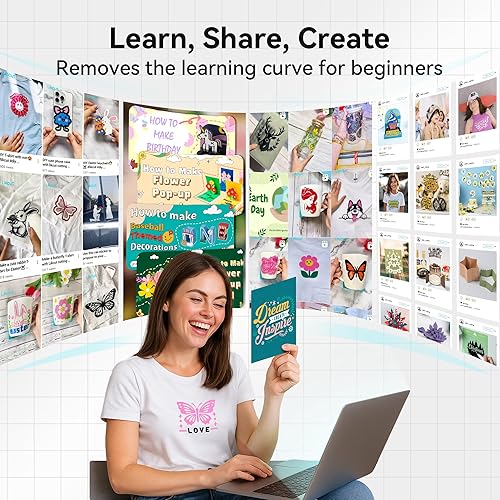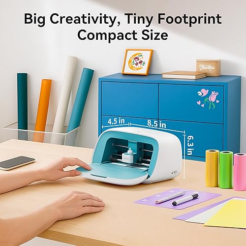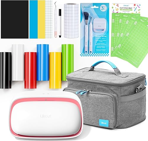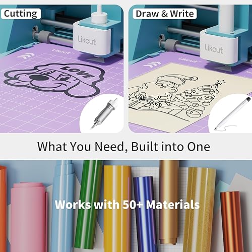 Likcut Glee S501 plotter de decoupe, Avec compartiment de rangement intégré, adapté pour, Papier cartonné, Vinyle permanent, Vinyle thermocollant, Kit débutant inclus, Bleu