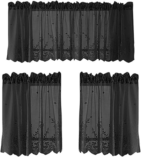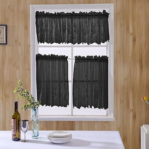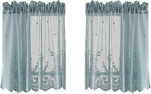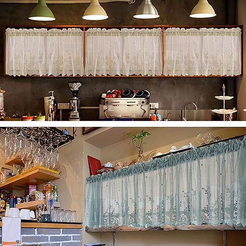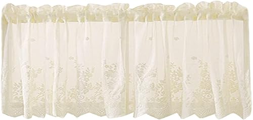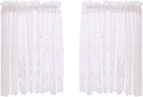 Betos Rideaux Courts en Dentelle pour fenêtre de Cuisine, café, cantonnière pour café, Cuisine, Salle de Bain Demi-Rideaux Courts (2 Panneau 74 X 90CM cm - Blanc)
