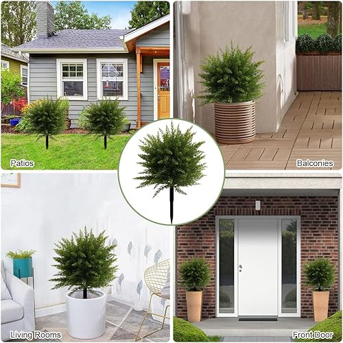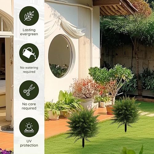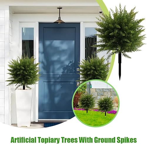 JOYWU Lot de 2 boules de cèdre artificielles pour extérieur - 60 cm - Résistantes aux UV - Avec piquet - Grands arbustes à feuilles persistantes pour porche, jardin, décoration d'intérieur (1 pièce)