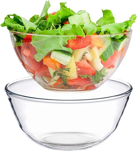 GBKDQQ Lot de 3 bols mélangeurs en verre (0,5 l, 0,8 l, 1,1 l) - Grand saladier rond en verre pour la cuisson, la pâtisserie, la préparation, le four, le micro-ondes et le lave-vaisselle - Transparent