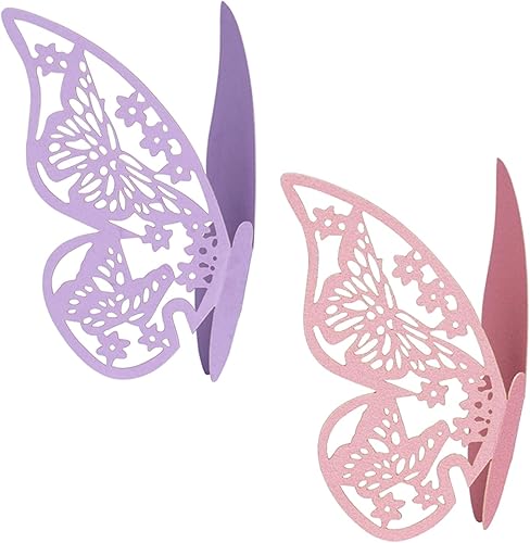 ElecMotive Carte de Verre Papillon 100 pcs pour Le Mariage De Champagne Verre De vin Parti Favor Tableau Nombre Décoration (Pink + Violet)