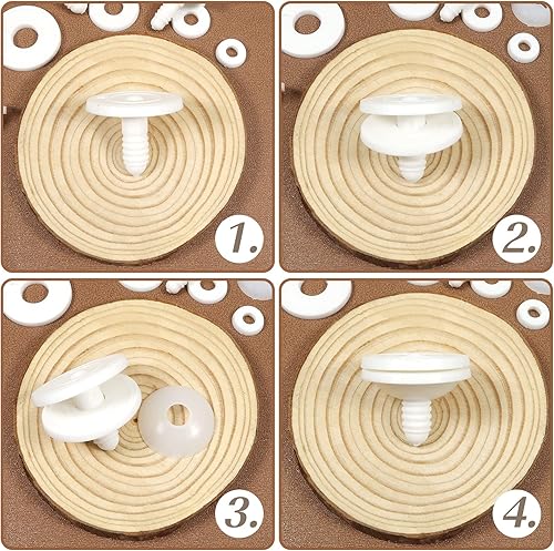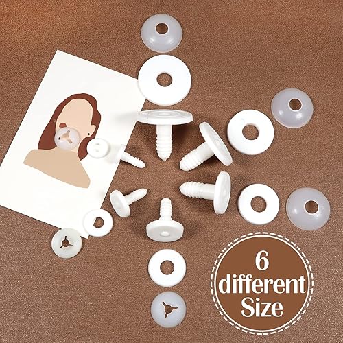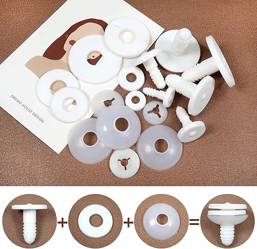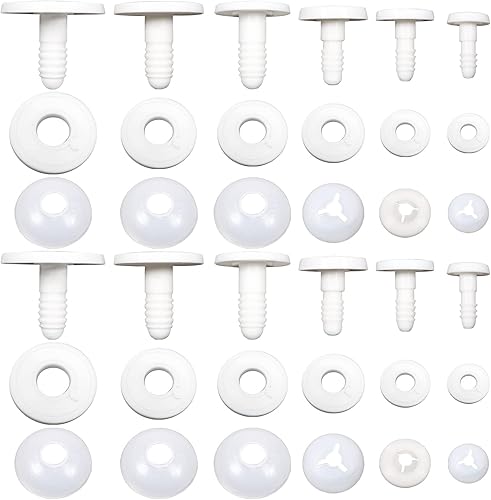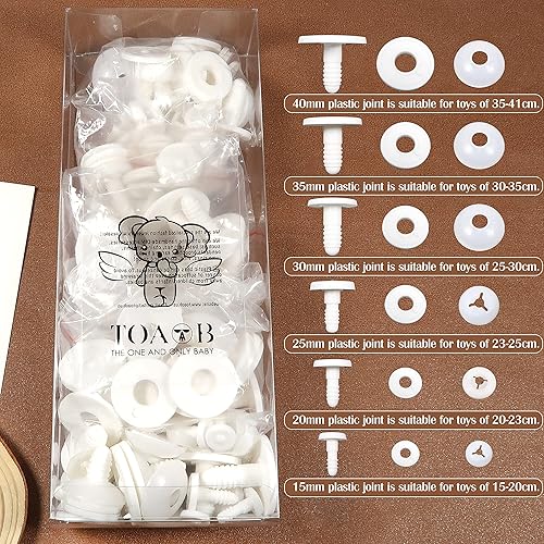 TOAOB 60 Ensembles Articulations de Peluche Articulée en Plastique Blanc Animal Joints 15mm 20mm 25mm 30mm 35mm 40mm et Rondelles Rondes pour Poupée Bras Jambes Membres Têtes