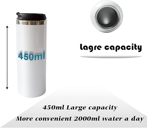 MR.R 15oz Sublimation Blanks Gobelet avec Couvercle, Bouteille D'eau Isolée Sous Vide À Double Paroi En Acier Inoxydable Tasse Droite, Tasse À Café Enduite De Poudre Durable, Blanc, 450 ml