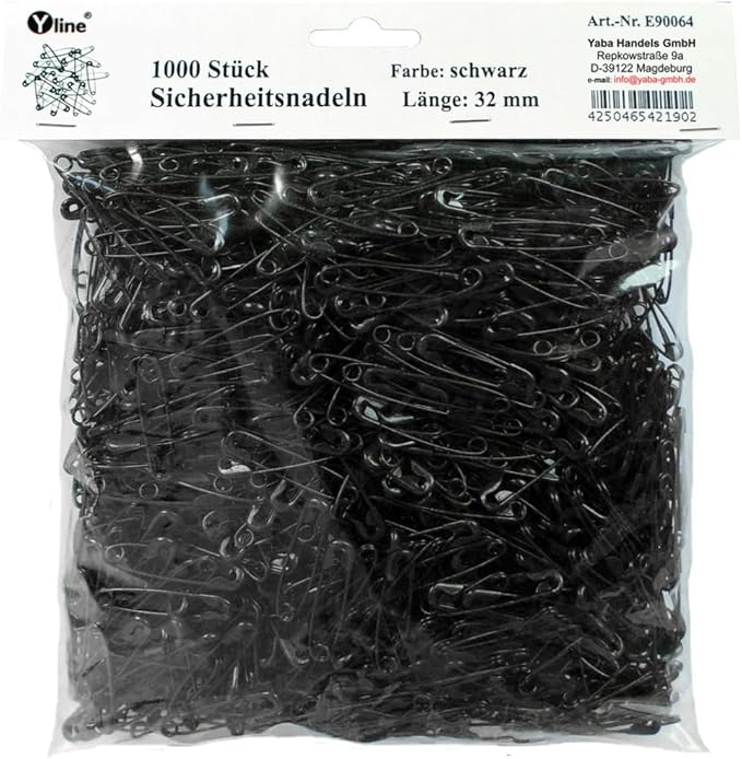E90064 Lot de 1000 épingles de sécurité Noir env. 32 mm