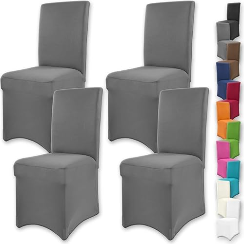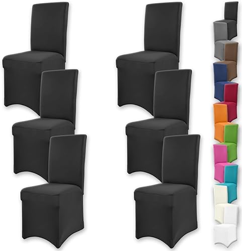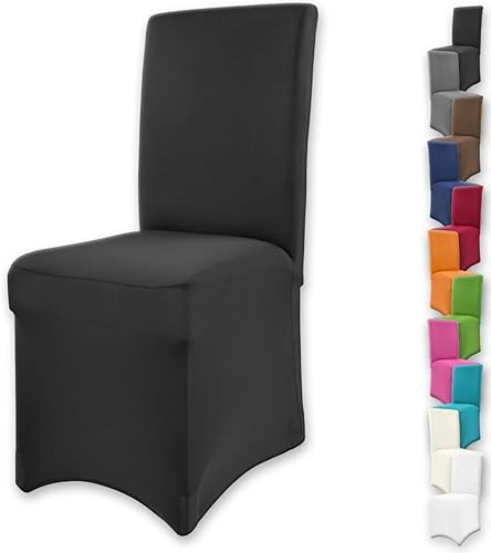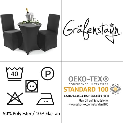 Gräfenstayn 4 pièces Housses de Chaise Stretch Henry - Dossier Rond et Angulaire - Pack AVANTAGE - Ajustement bi-élastique avec Joint Oeko-Tex Standard 100 : 'Confiance Vérifiée (Noir)
